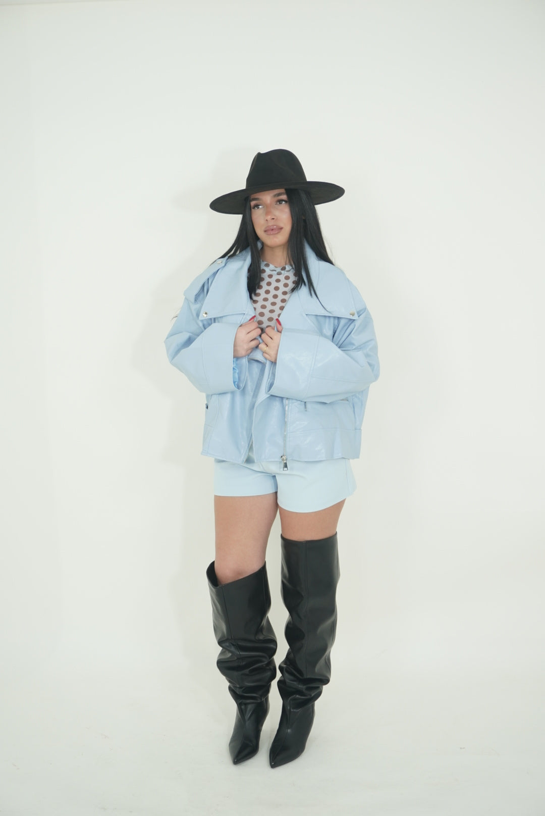La modella è alta 1,62 cm ed è una M, per qualsiasi domanda puoi contattarci tramite la nostra assistenza WhatsApp!