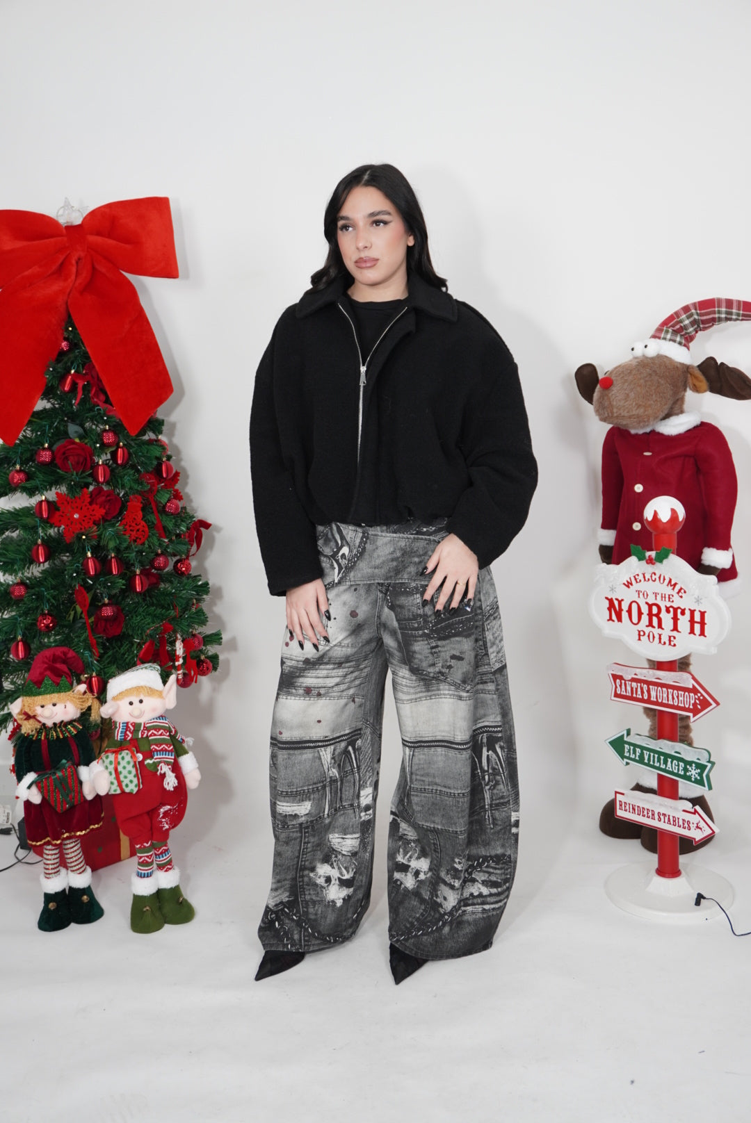 La modella è alta 1,62 cm ed indossa una M, per qualsiasi domanda puoi contattarci tramite la nostra assistenza WhatsApp!